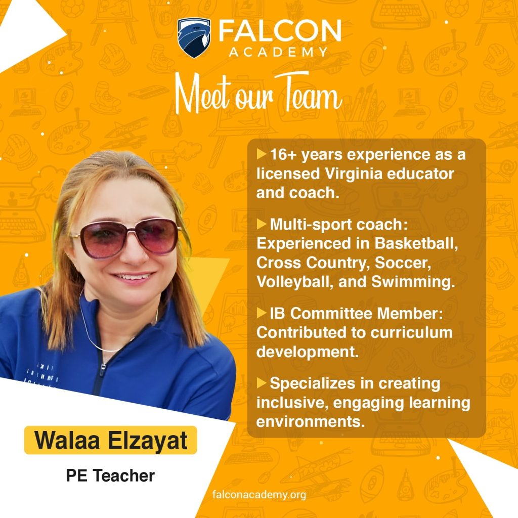 We are absolutely thrilled to welcome Walaa Elzayat to the Falcon Academy team as one of our dedicated PE Teachers!